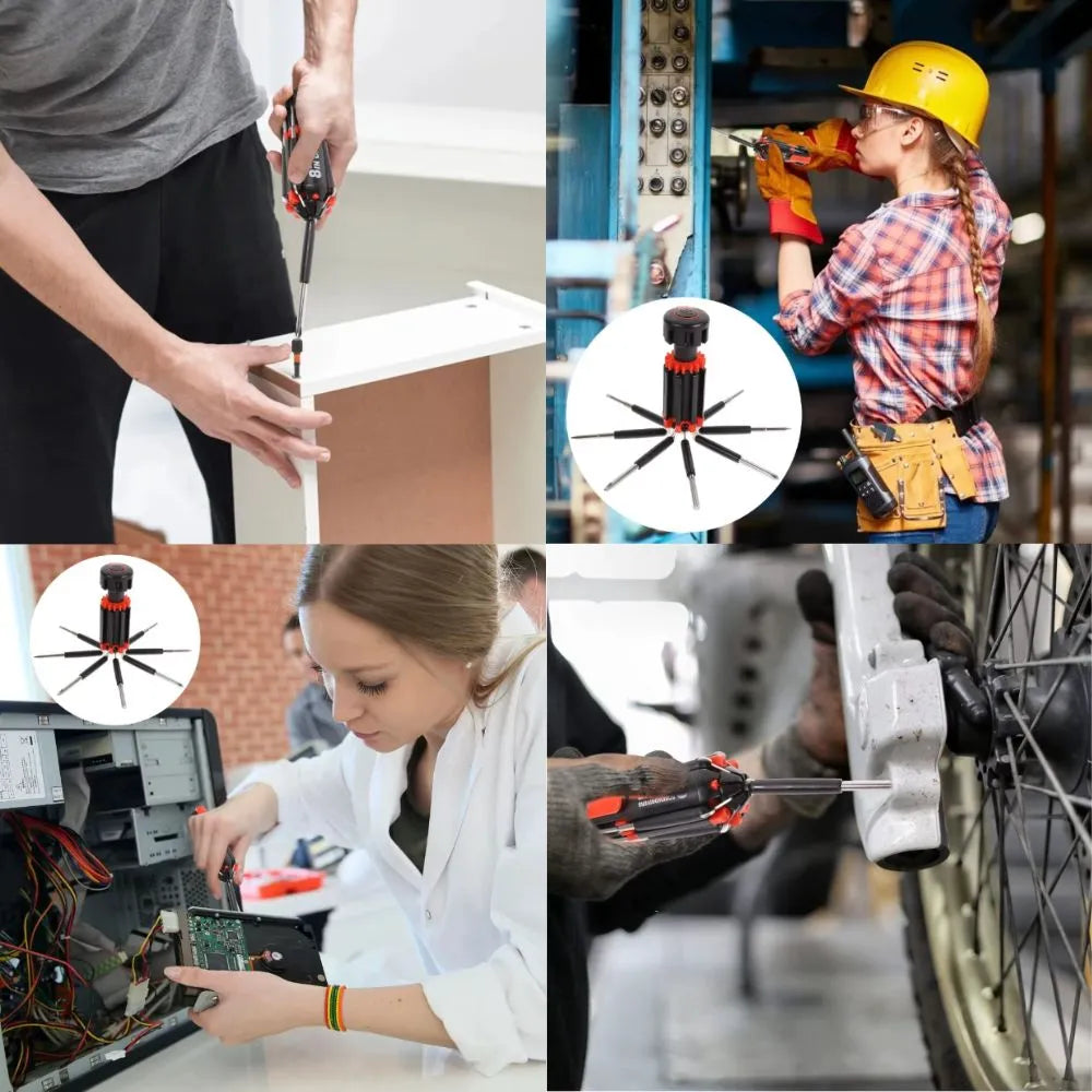 🔧 8 Herramientas en 1: Destornilladores de varios tamaños y cabezales magnéticos para reparaciones precisas.
